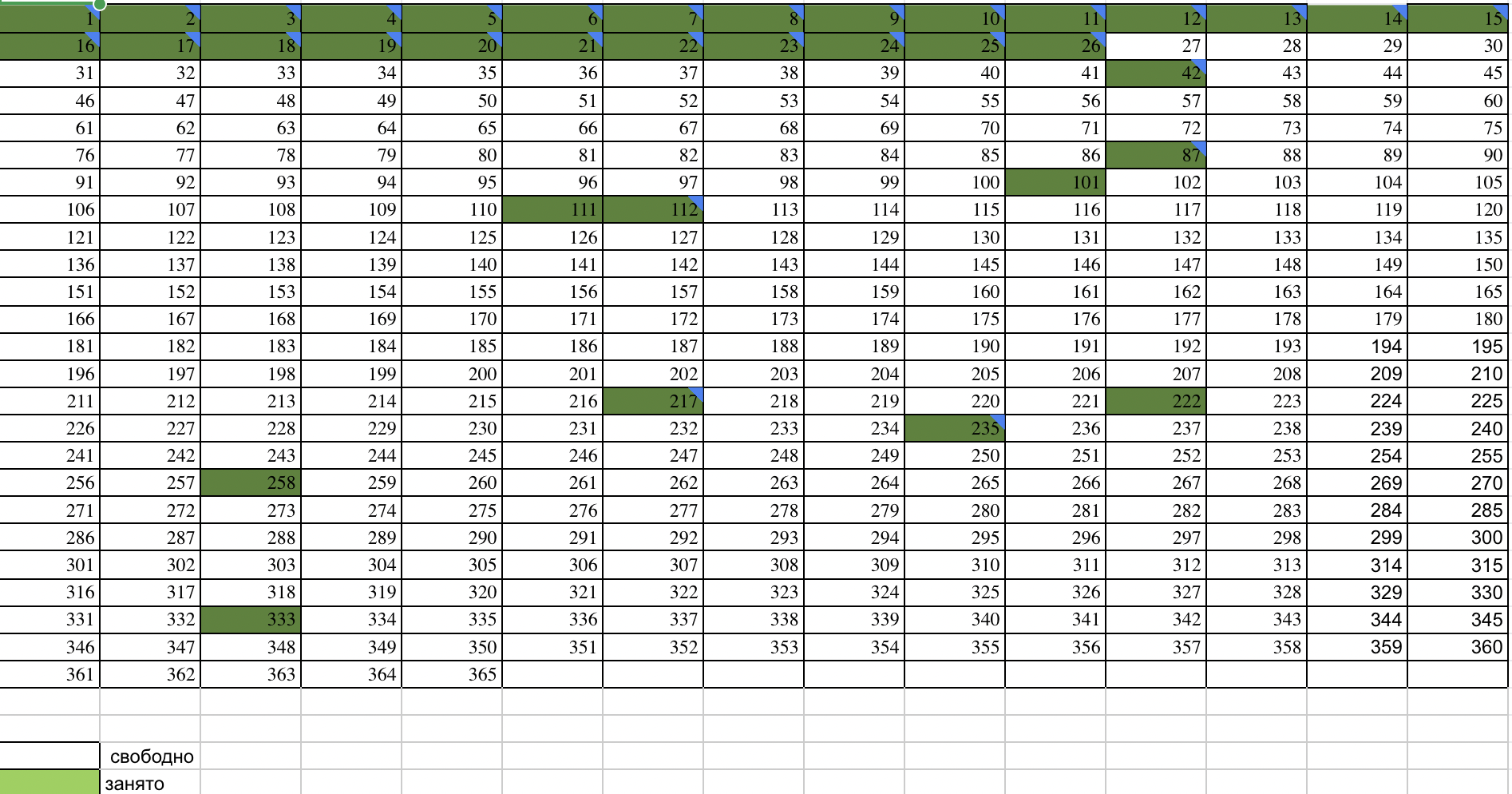 Номера закрепляются за заказом после полной оплаты, так же можно выбрать любой номер из незанятых - свое (или одаряемого) счастливое число, день рождения, и что угодно ещё. В примечаниях к заказу укажите желаемый номер (свободные номера вы видите на картинке) - или оставьте выбор за нами.